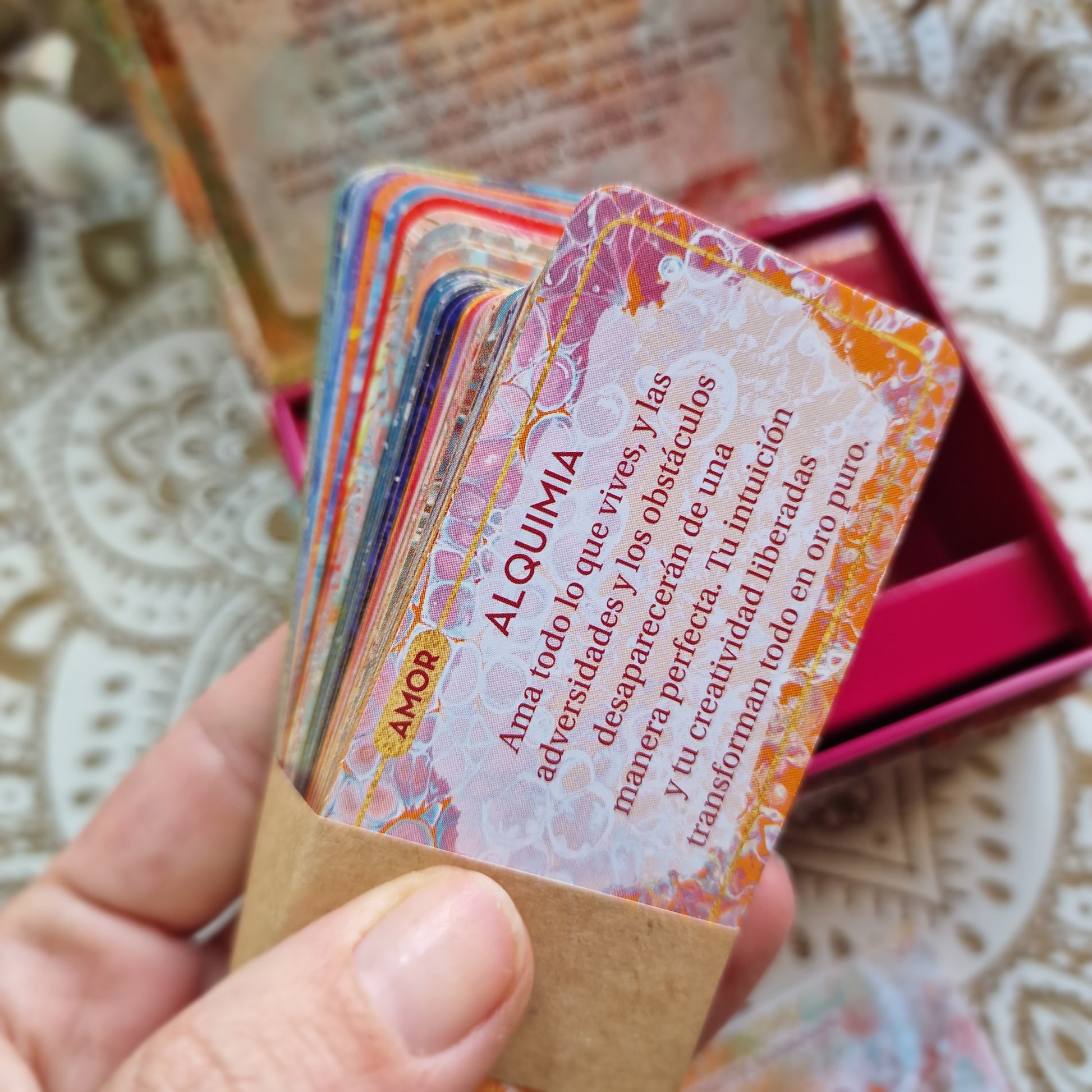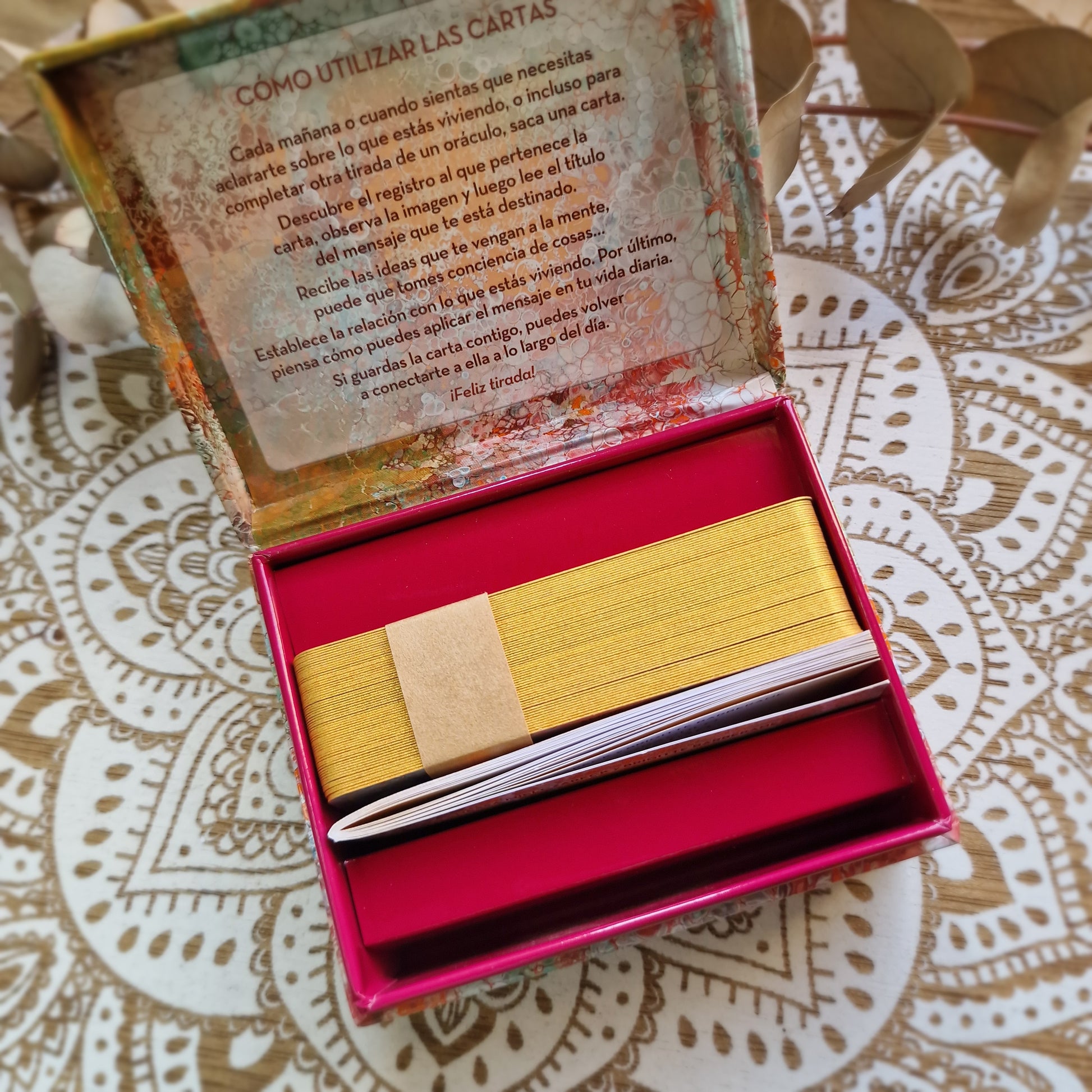 Con un formato manejable, estas cartas son ideales para consultas breves, rituales de introspección o acompañarte en momentos de búsqueda interior. Llevar este oráculo contigo es tener un susurro amable que te recuerda: confía, siente, transforma.