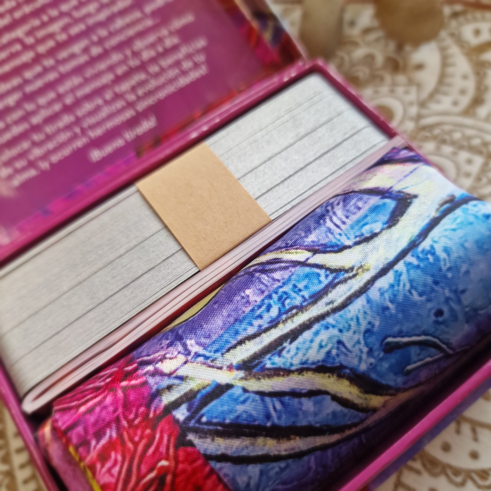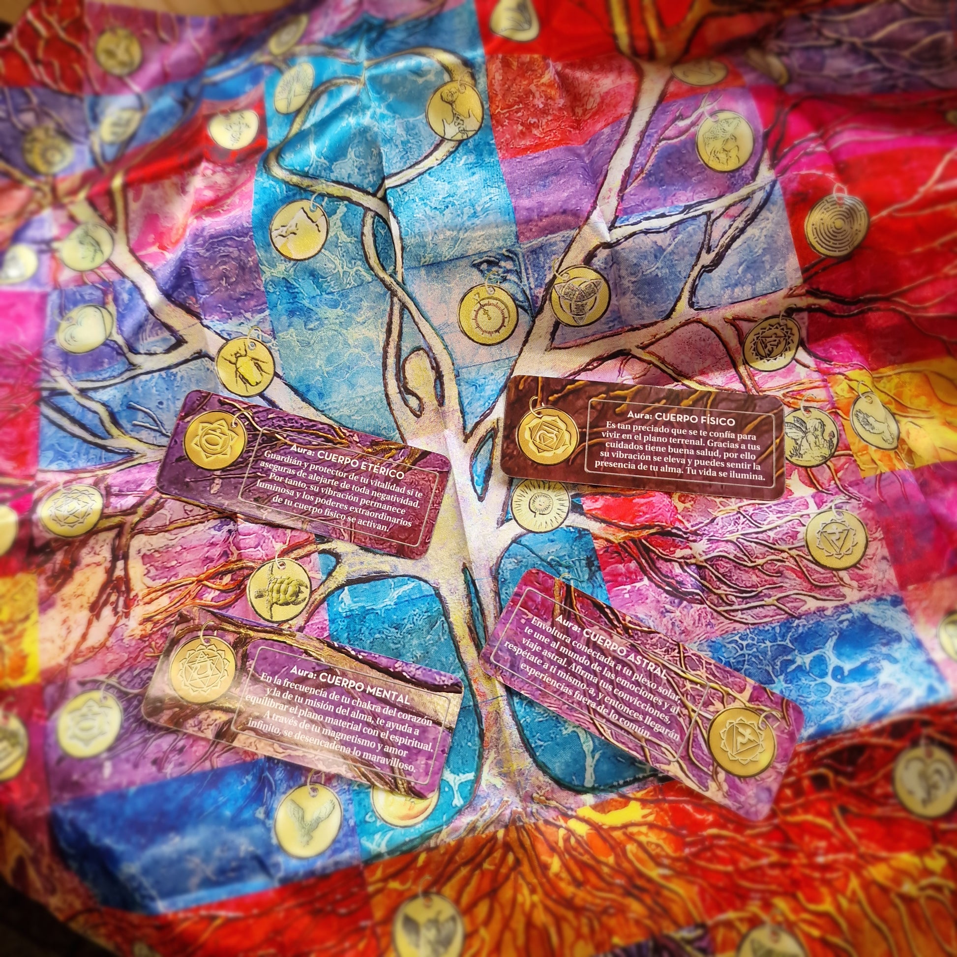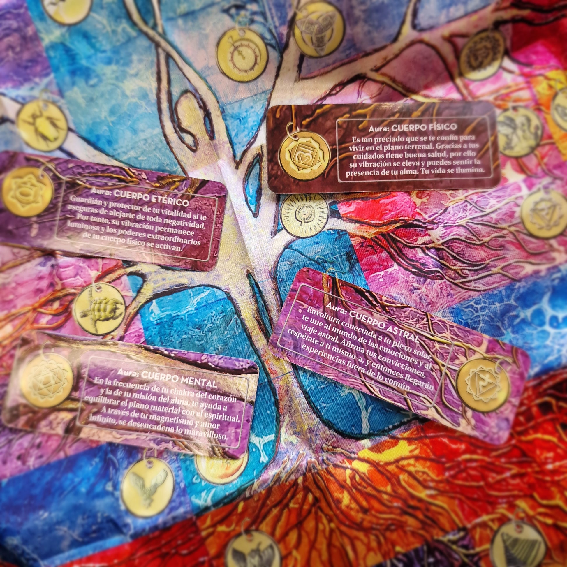 Cada carta ofrece un mensaje para conectar con tu misión interior, liberar bloqueos y dar pasos conscientes hacia aquello que sientes que viniste a vivir. El tapete añade un elemento visual y energético que potencia la experiencia al colocar las cartas sobre él.