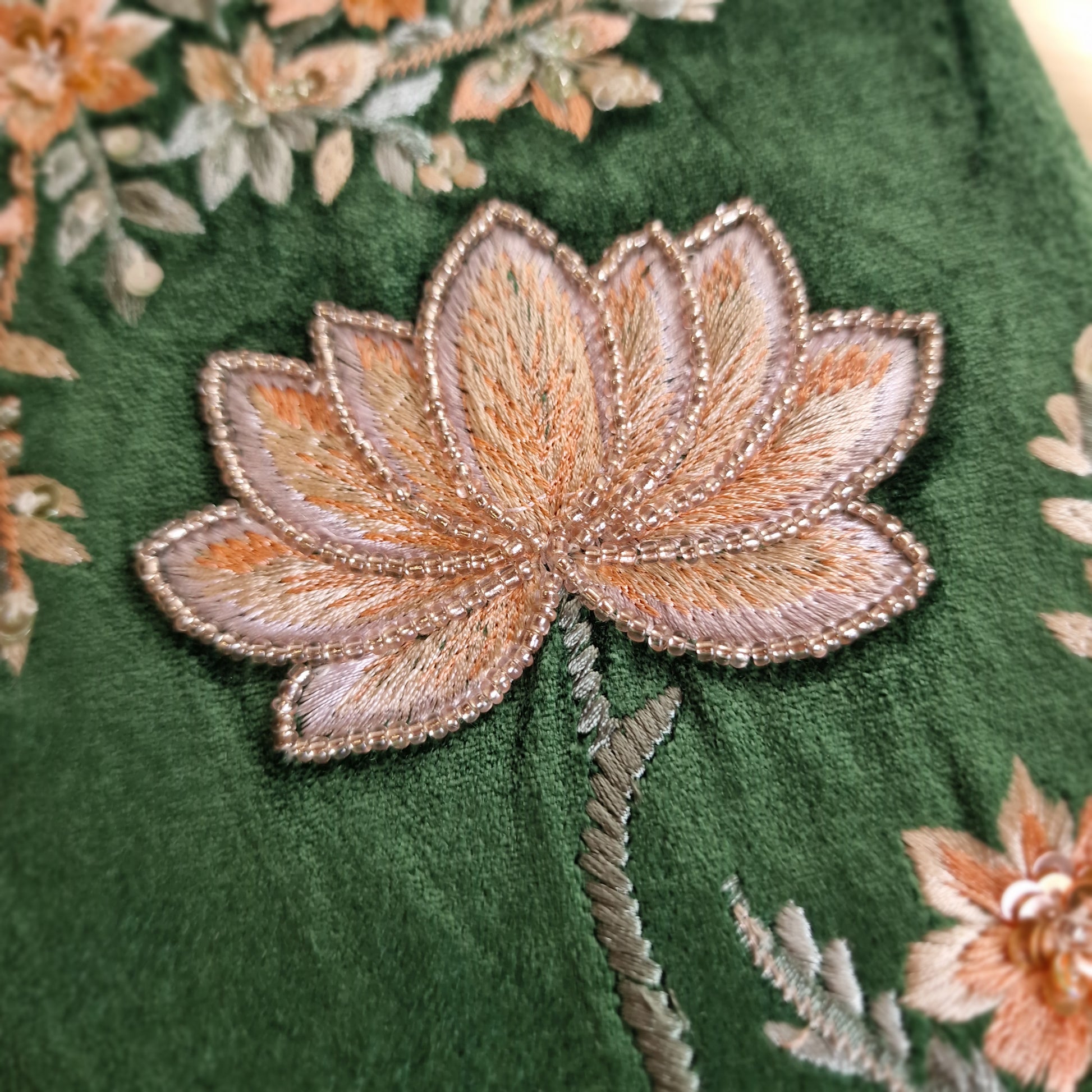 Este delicado cuaderno de terciopelo combina suavidad, simbolismo y elegancia en una pieza inspiradora. El bordado de la flor de loto, adornado con finas cuentas decorativas, representa la pureza, la renovación y el florecimiento espiritual —un recordatorio de que incluso desde la oscuridad puede nacer la luz.