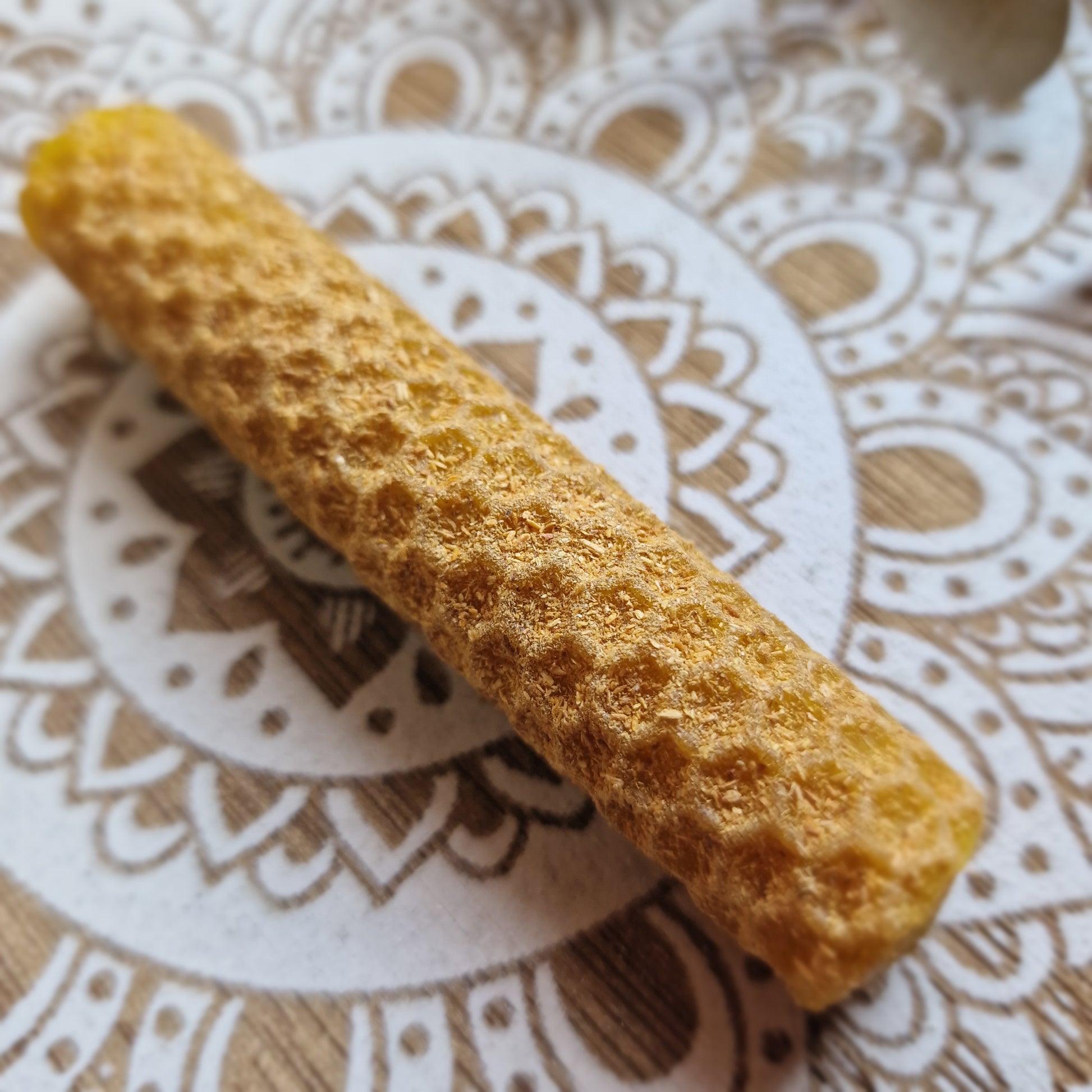 El Palo Santo es conocido por su poder purificador y su aroma sagrado, que ayuda a limpiar la energía del espacio, liberar bloqueos y atraer la calma interior. La cera de abeja, con su vibración elevada, potencia esta energía, creando un ambiente armonioso y lleno de paz.