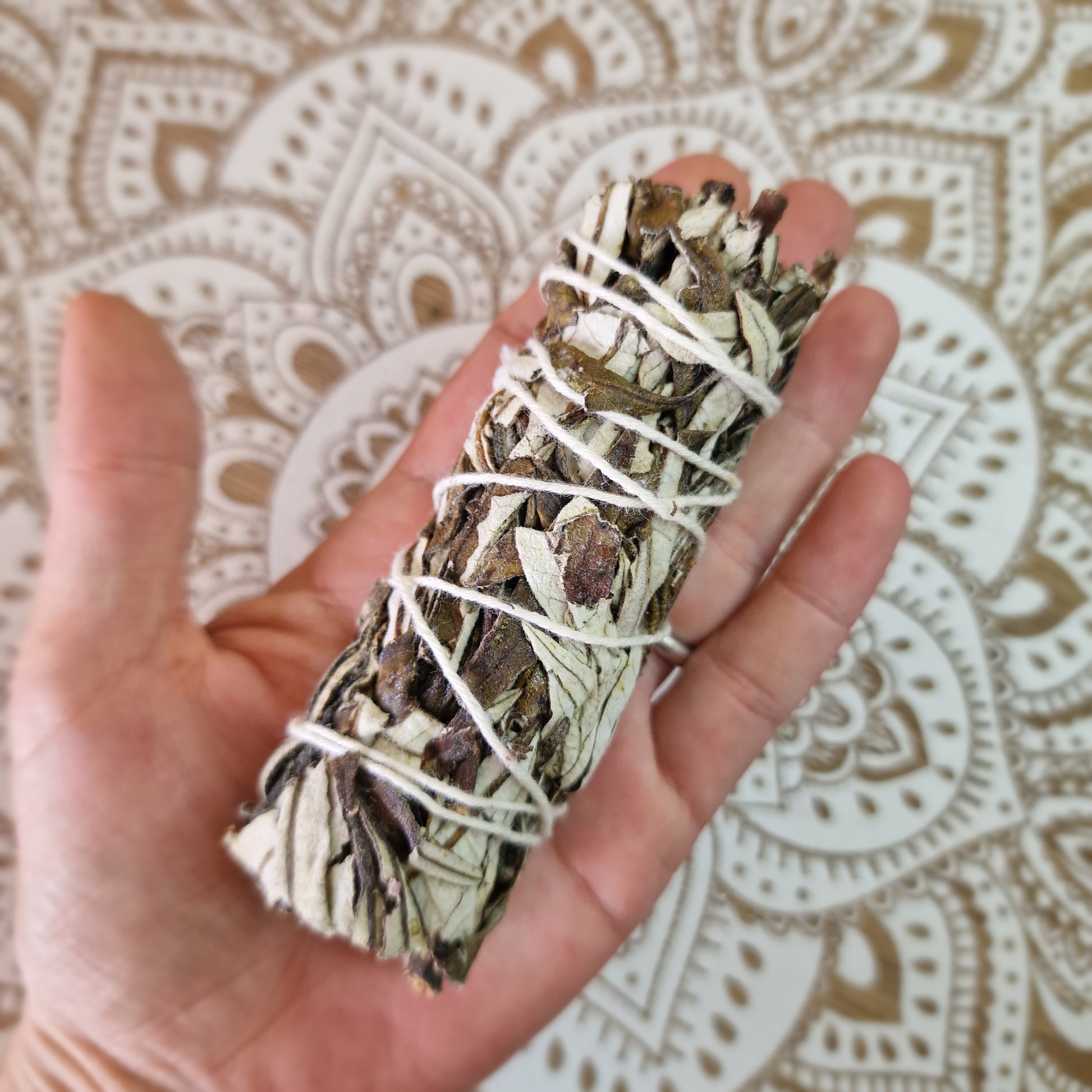 Su suave aroma herbal no solo crea una atmósfera de calma y serenidad, sino que también fomenta una profunda conexión con la tierra, promoviendo el enraizamiento y la estabilidad emocional. Perfecto para meditación, ceremonias o rituales, este atado te invita a reconectar con lo esencial y renovar tu energía desde su raíz.