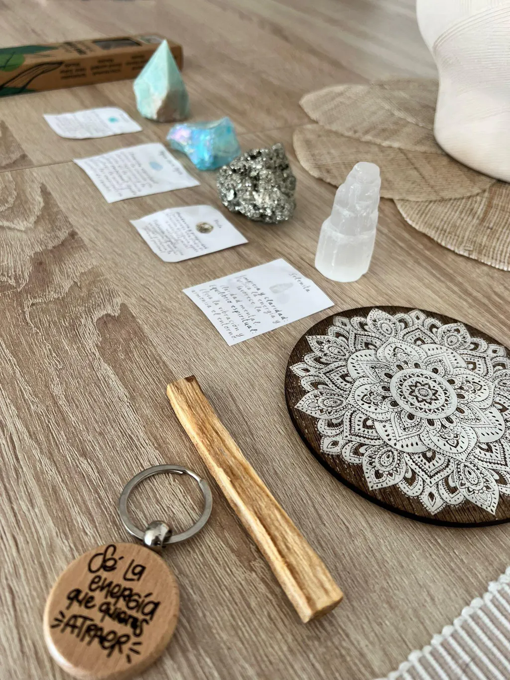 🔹 Ideal para colocar tus minerales y cristales, usar como base de velas en tarro y proteger tus muebles del calor, o simplemente como elemento decorativo lleno de intención.