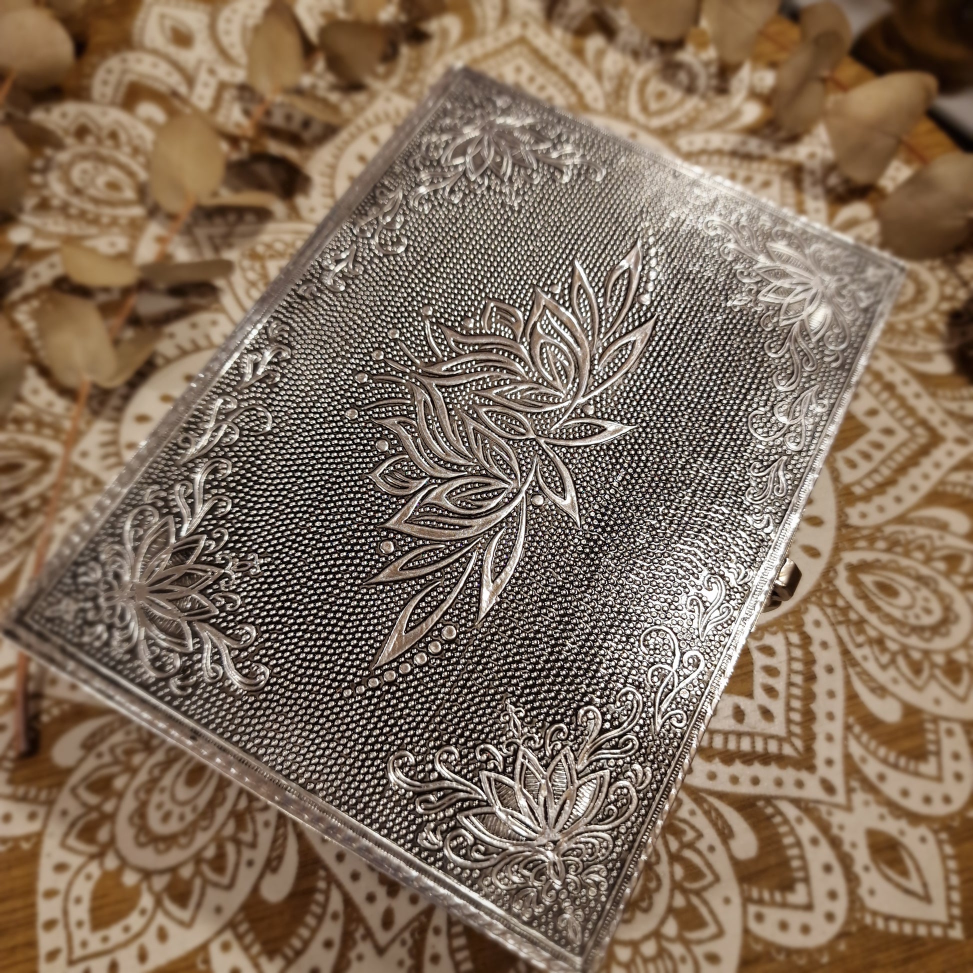 La flor de loto, símbolo de pureza, renacimiento y crecimiento interior, convierte esta caja en mucho más que un objeto decorativo: es un espacio para guardar aquello que te inspira y te acompaña.