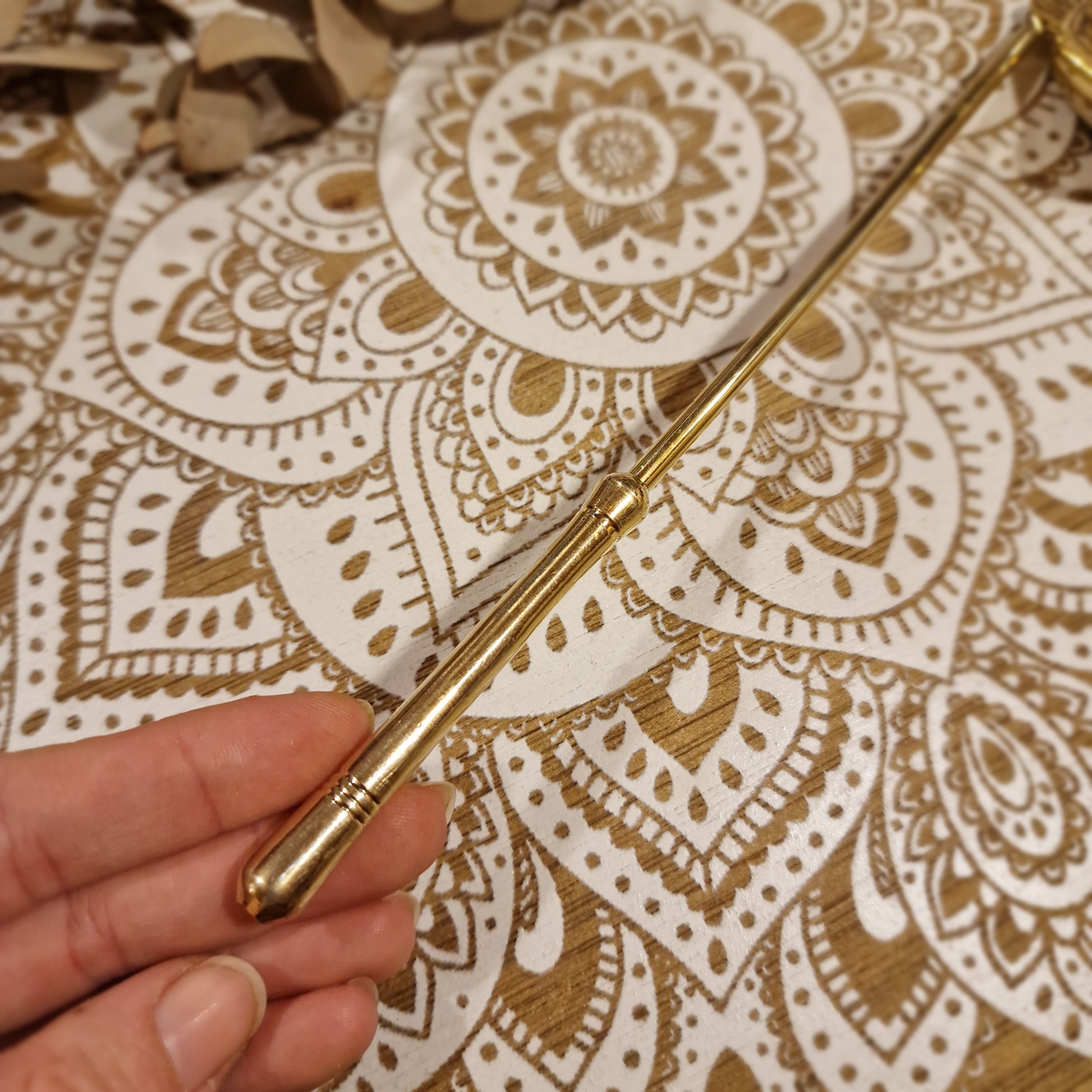 Esta sofisticada campana apaga velas es una pieza única que combina funcionalidad, belleza y simbolismo. Con un diseño dorado y grabado con el símbolo de la Flor de la Vida, esta campana no solo apaga las llamas de manera segura, sino que también infunde energía positiva a tu espacio. El símbolo de la Flor de la Vida es conocido por representar la armonía y la conexión universal, brindando un toque espiritual y equilibrado a cualquier ambiente.