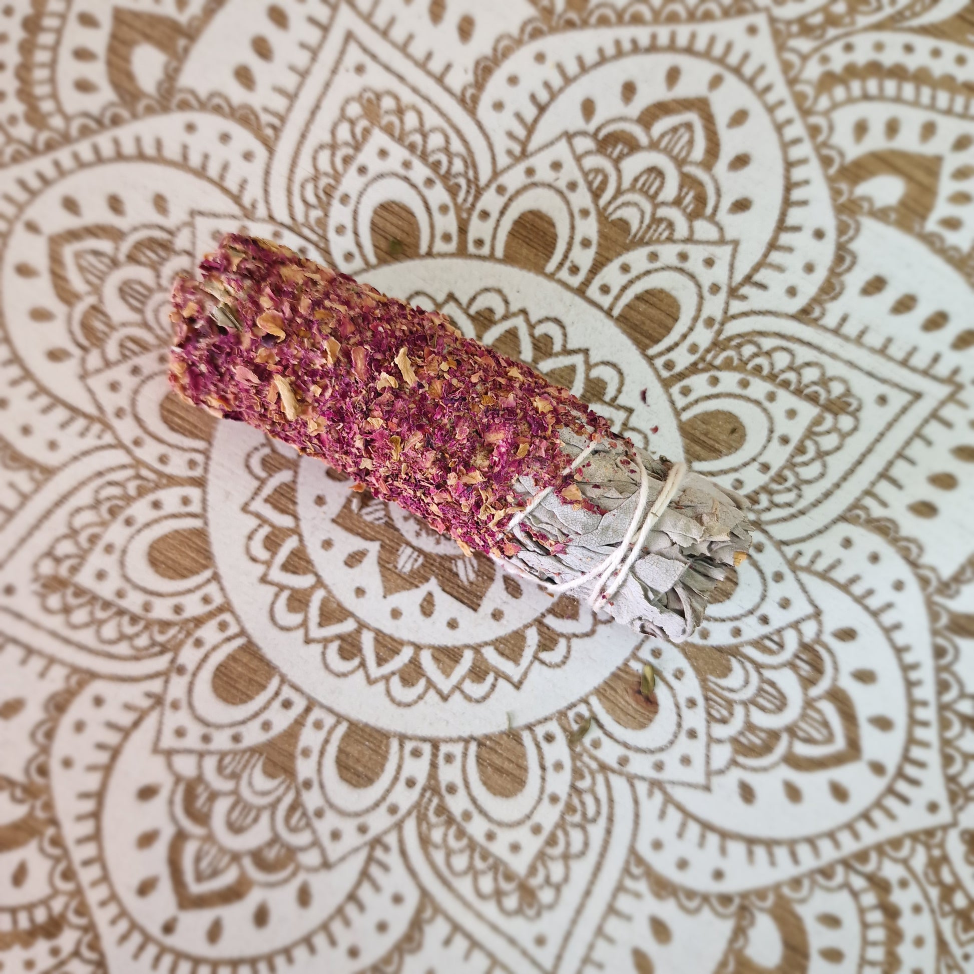 La combinación de sahumerio de salvia blanca rebozado en pétalos de rosa puede ofrecer una experiencia aromática única y armoniosa.