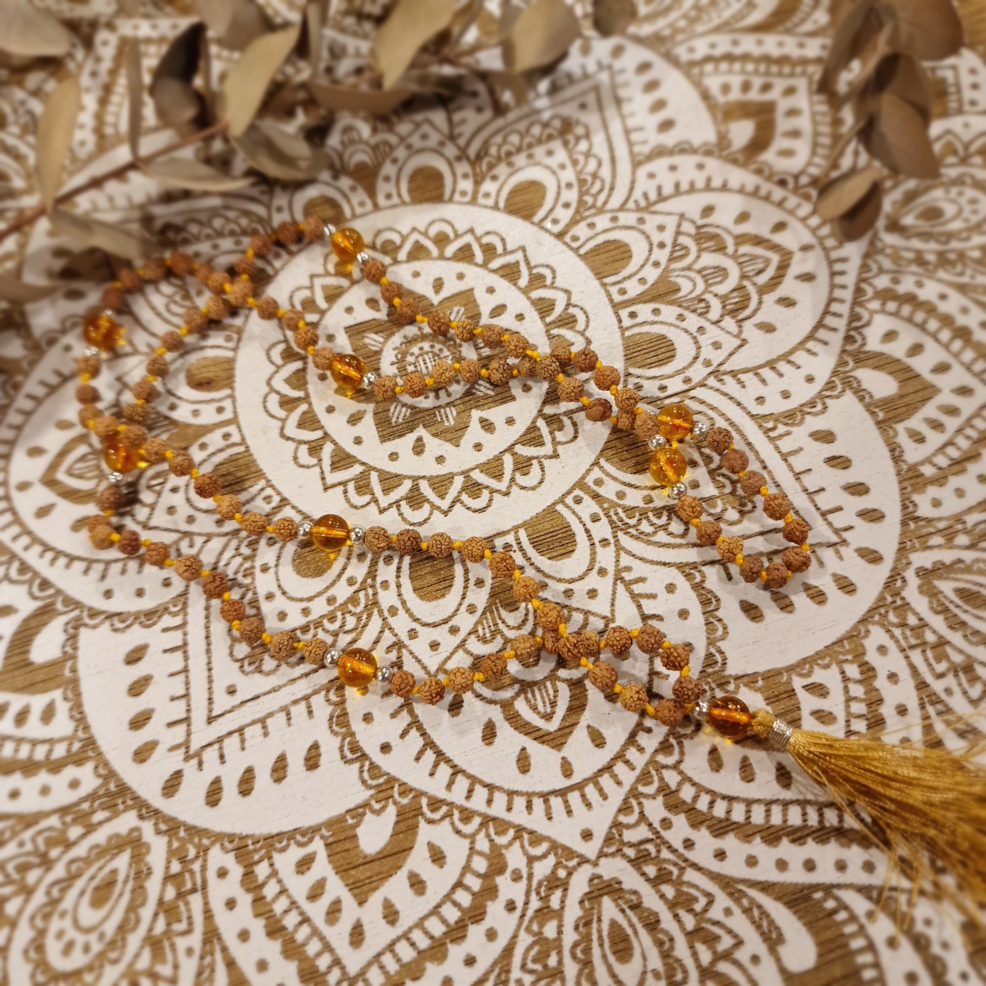 Mala de Rudraksha y Citrino con Borla ~ Energía, Alegría y Abundancia