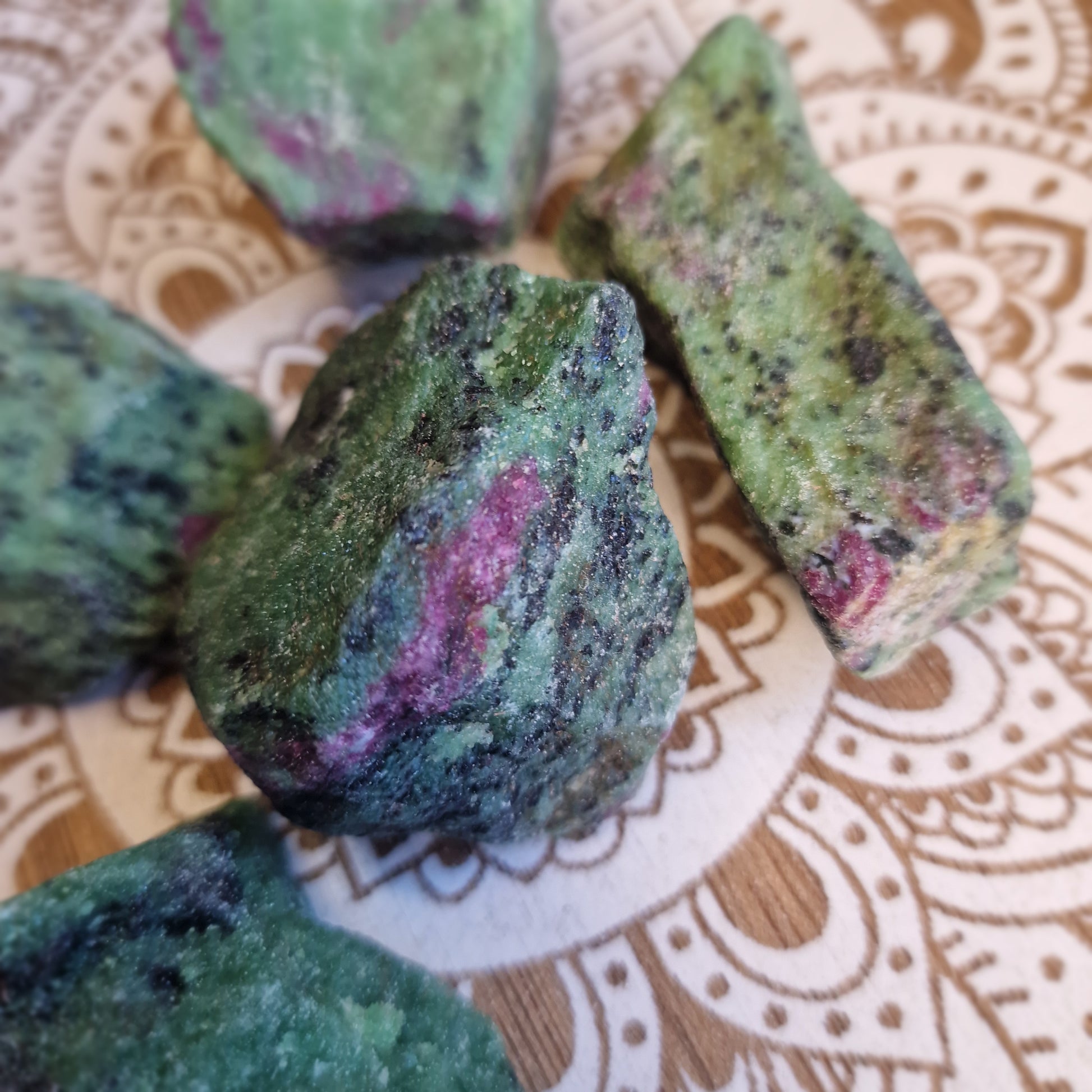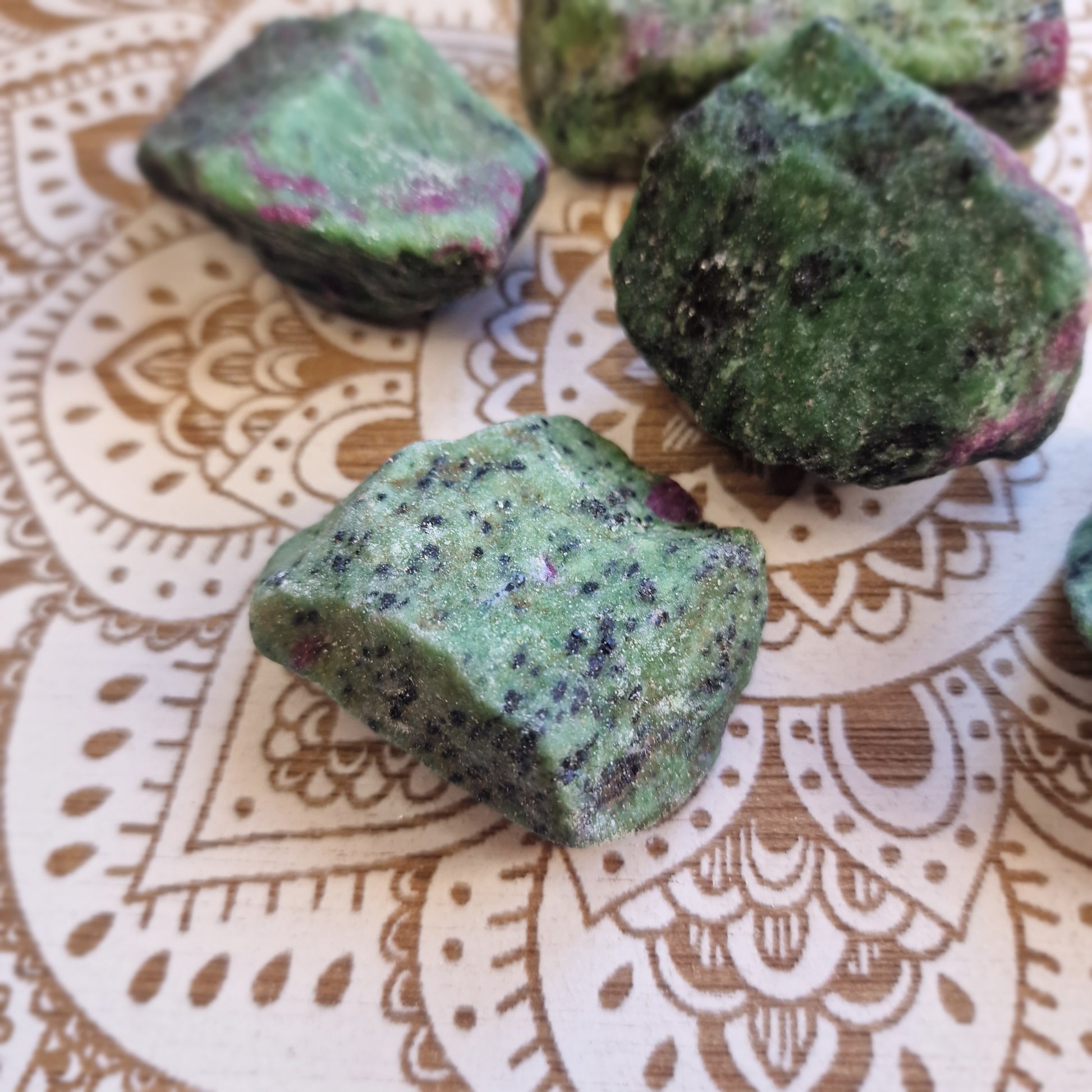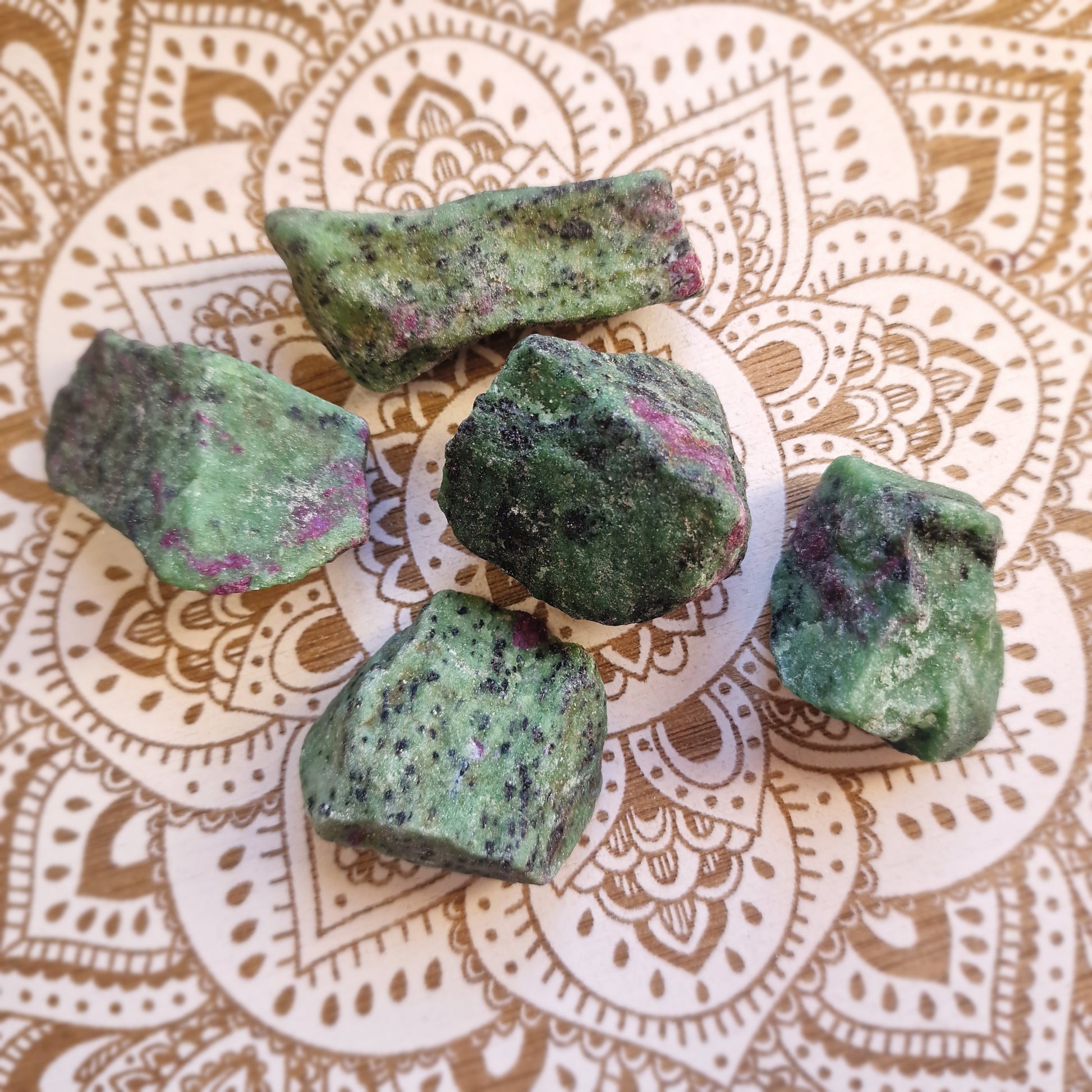 Con sus tonalidades verdes, negras y en ocasiones matices rojizos, este mineral transmite fuerza vital y armonía, convirtiéndose en un gran aliado para el crecimiento personal y espiritual.