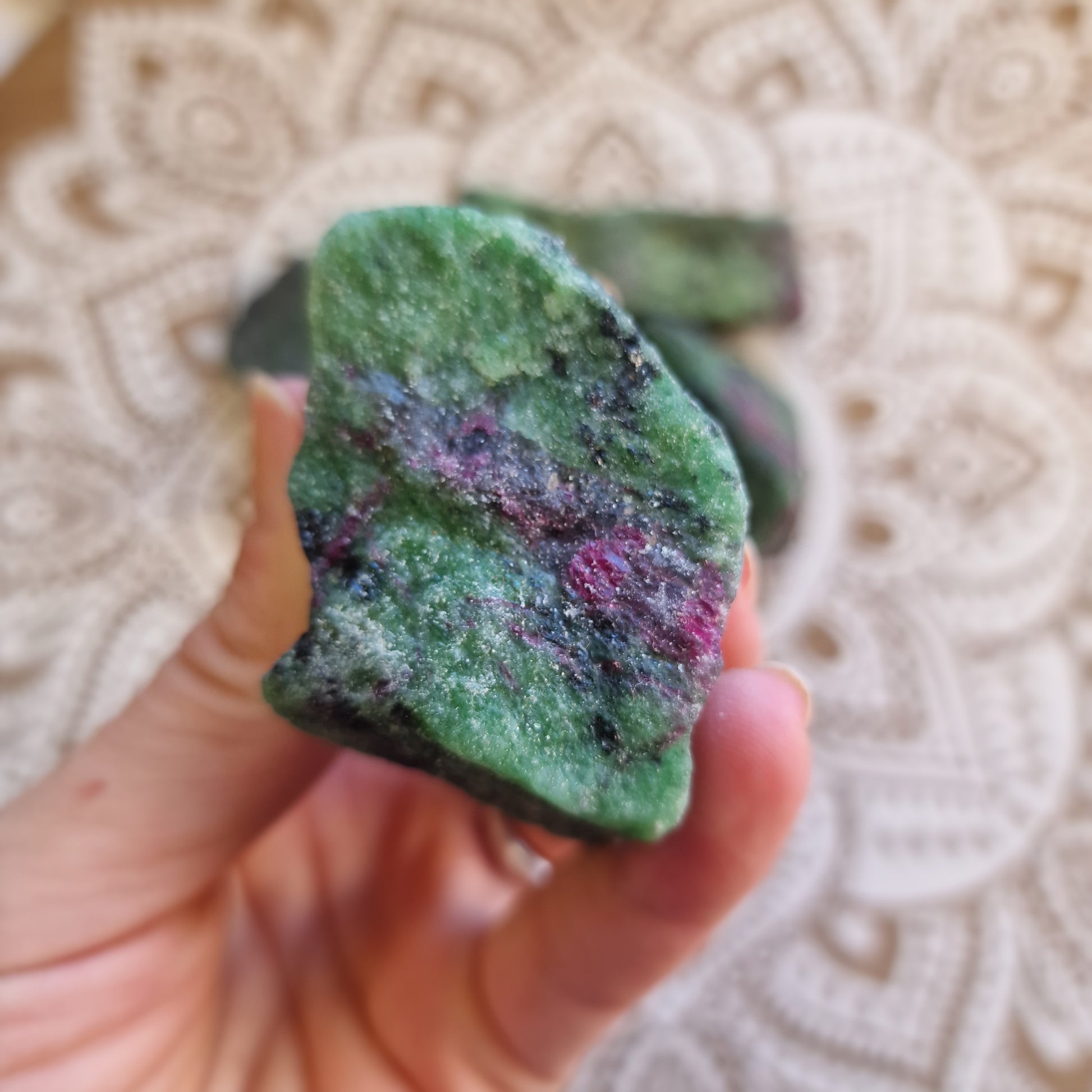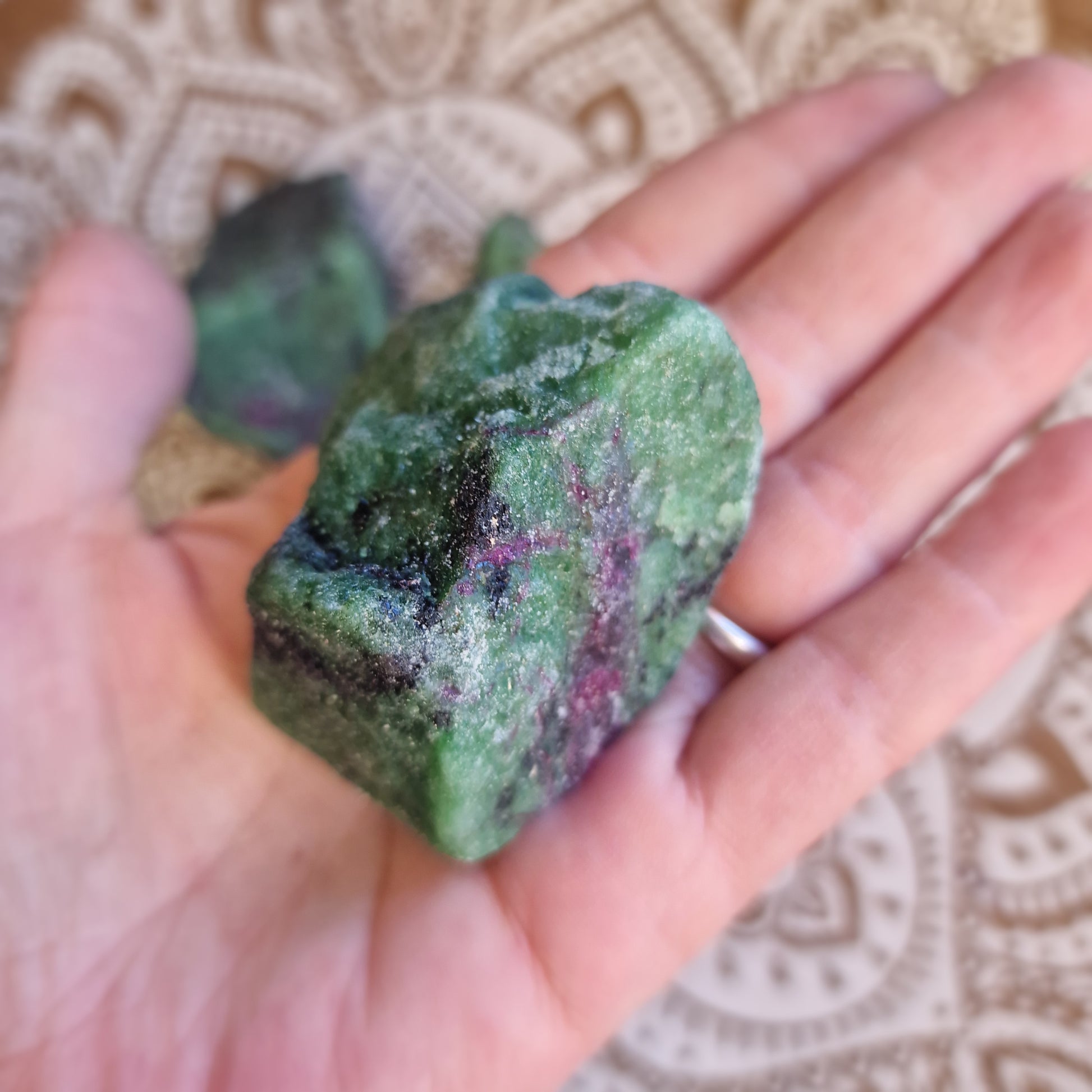 Este masivo de zoisita, con un tamaño aproximado de 5 a 6 cm, es una piedra poderosa para quienes buscan vitalidad, motivación y conexión con la energía de la vida. La zoisita es conocida por su capacidad para transformar energías densas en positivas, ayudando a superar la apatía y recuperar el entusiasmo.