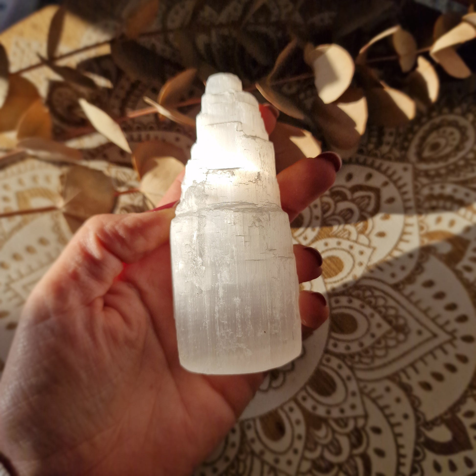 - Equilibrio y armonía: Colocar un monolito de selenita en tu espacio ayuda a mantener el equilibrio energético, protegiendo el entorno de influencias negativas y promoviendo la calma.