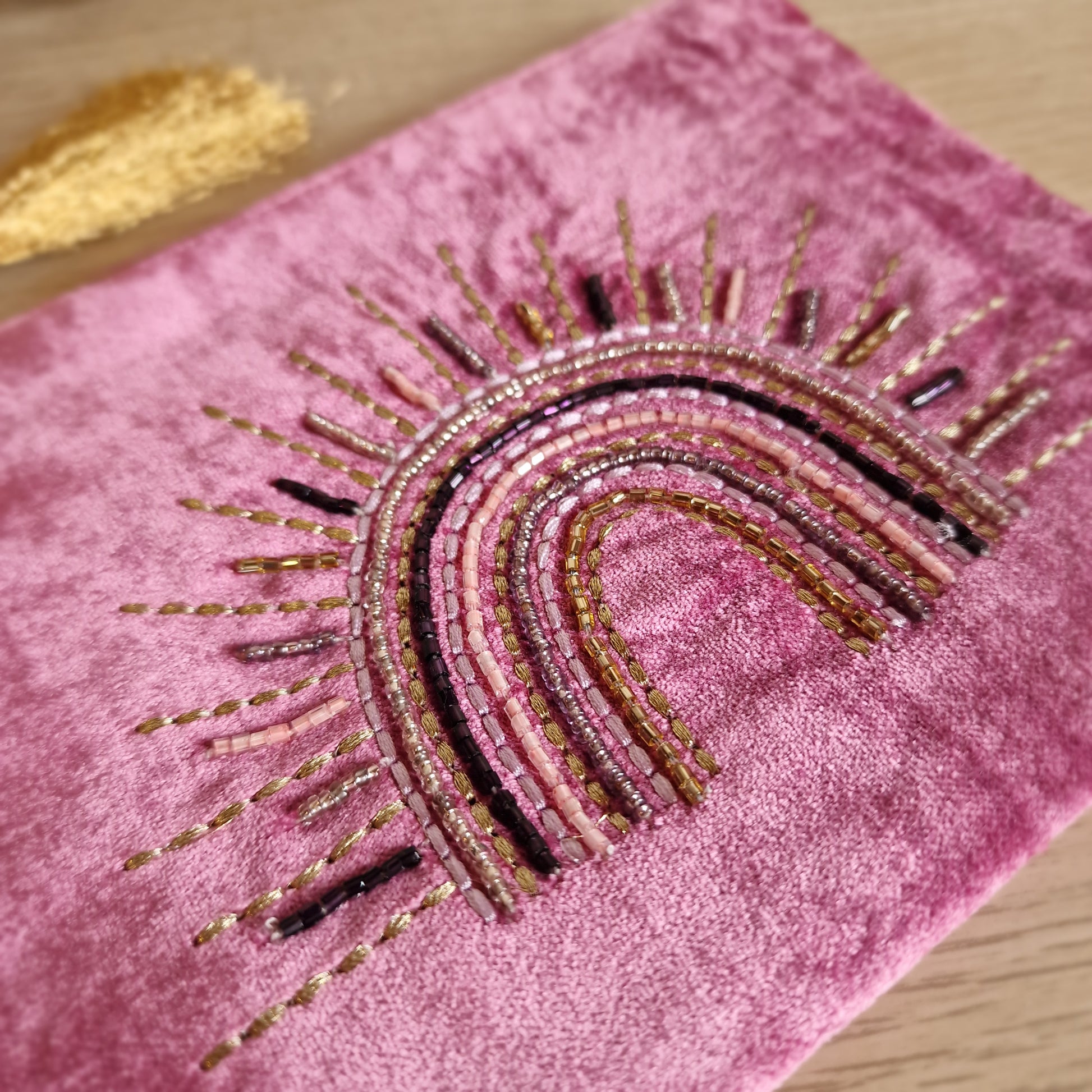 Este neceser de terciopelo en tono morado destaca por su delicado bordado de arcoíris, símbolo de esperanza, transformación y nuevos comienzos. Un diseño alegre y con significado, pensado para acompañarte en el día a día y recordarte que siempre hay espacio para la luz después de cualquier proceso.