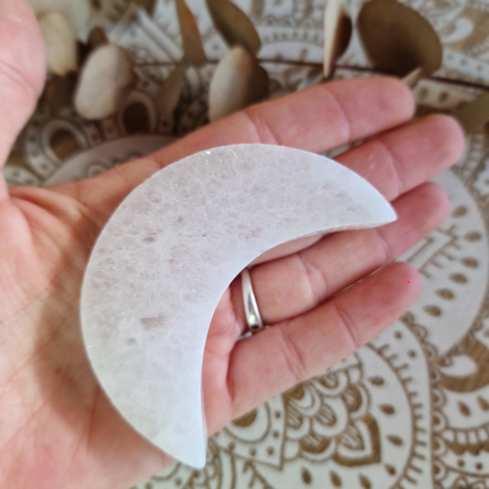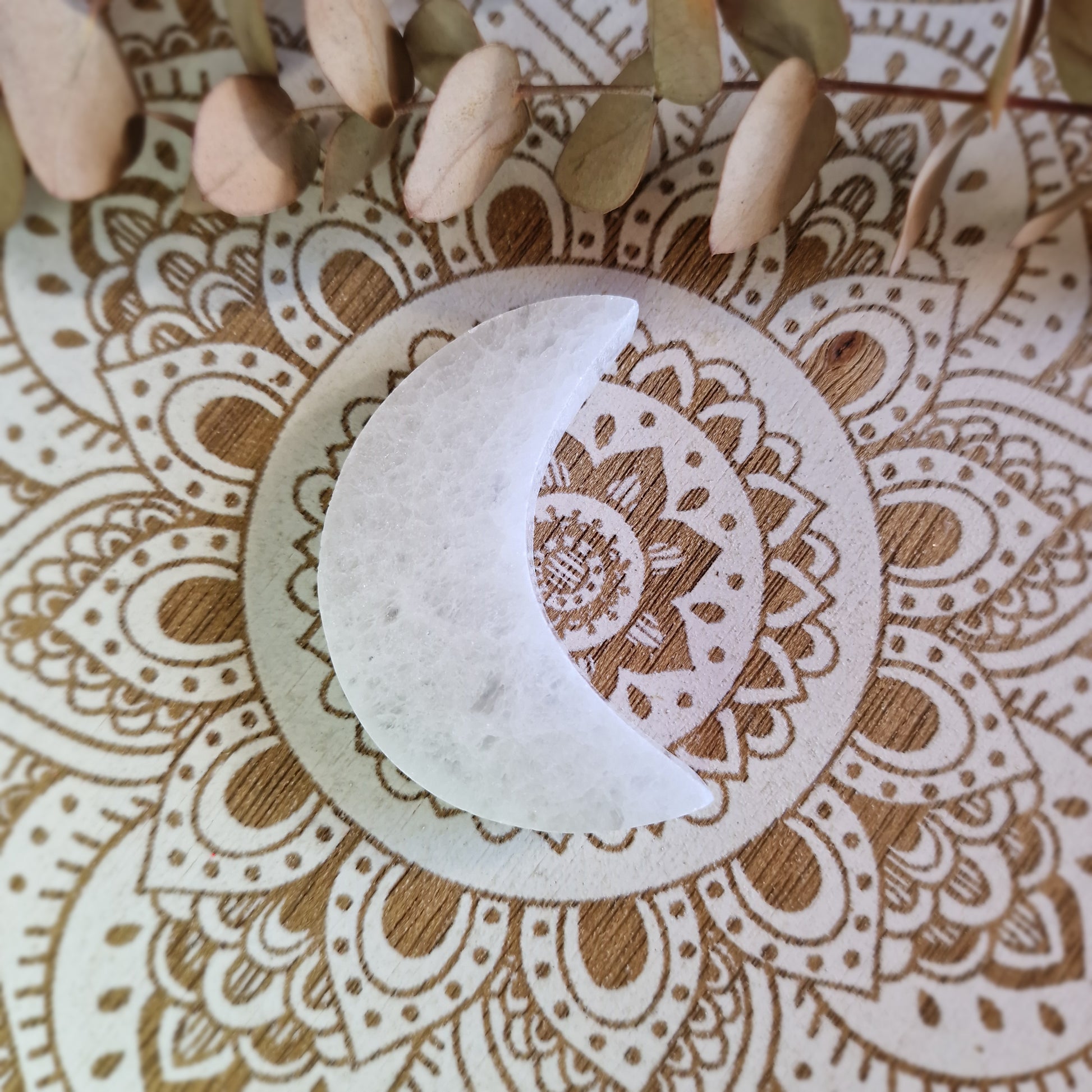 Placa de Selenita Media Luna ~ Luz y purificación energética