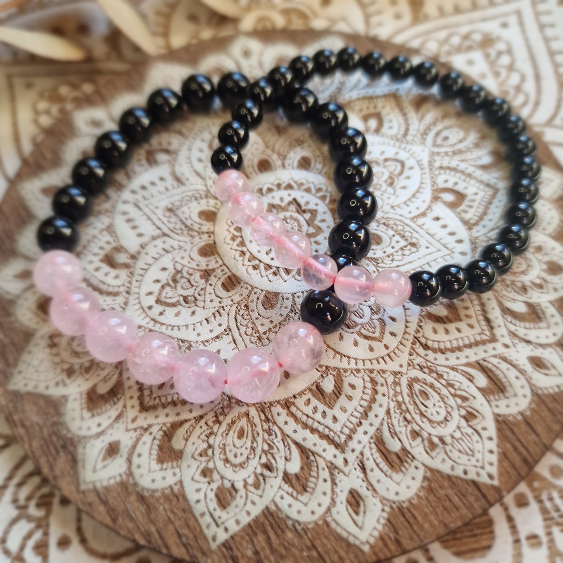 Pulsera Obsidiana Negra y Cuarzo Rosa ~ Protección y Amor ~ 6 y 8 mm