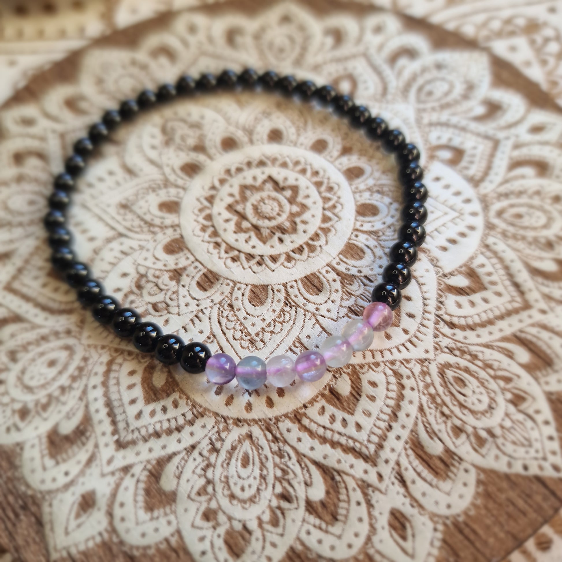 Pulsera Obsidiana Negra con Fluorita ~ Protección y Claridad Energética ~ 4 mm