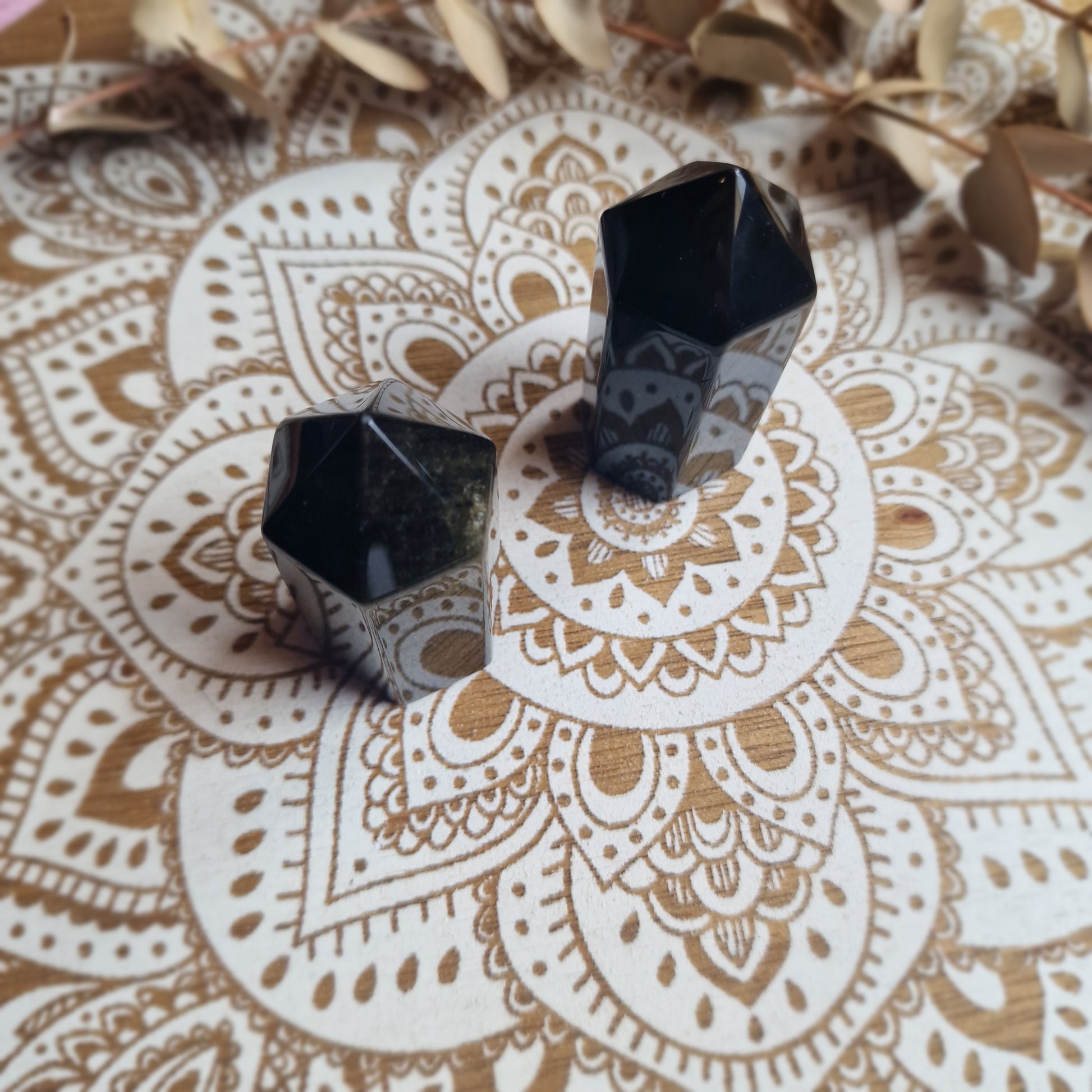 La obsidiana dorada es un mineral de origen volcánico que muestra reflejos dorados cuando la luz incide sobre su superficie. Tradicionalmente se asocia con la protección, el enraizamiento y la introspección profunda, ayudando a observar con mayor claridad aquello que necesita ser comprendido.