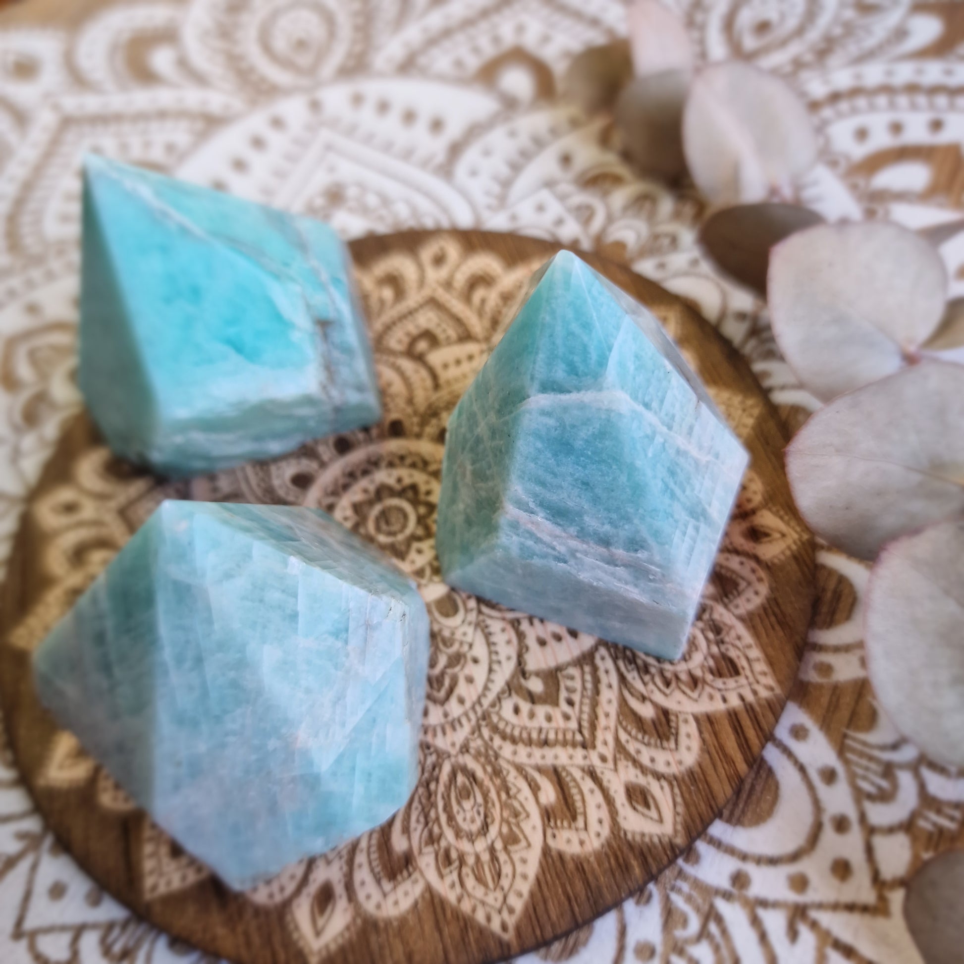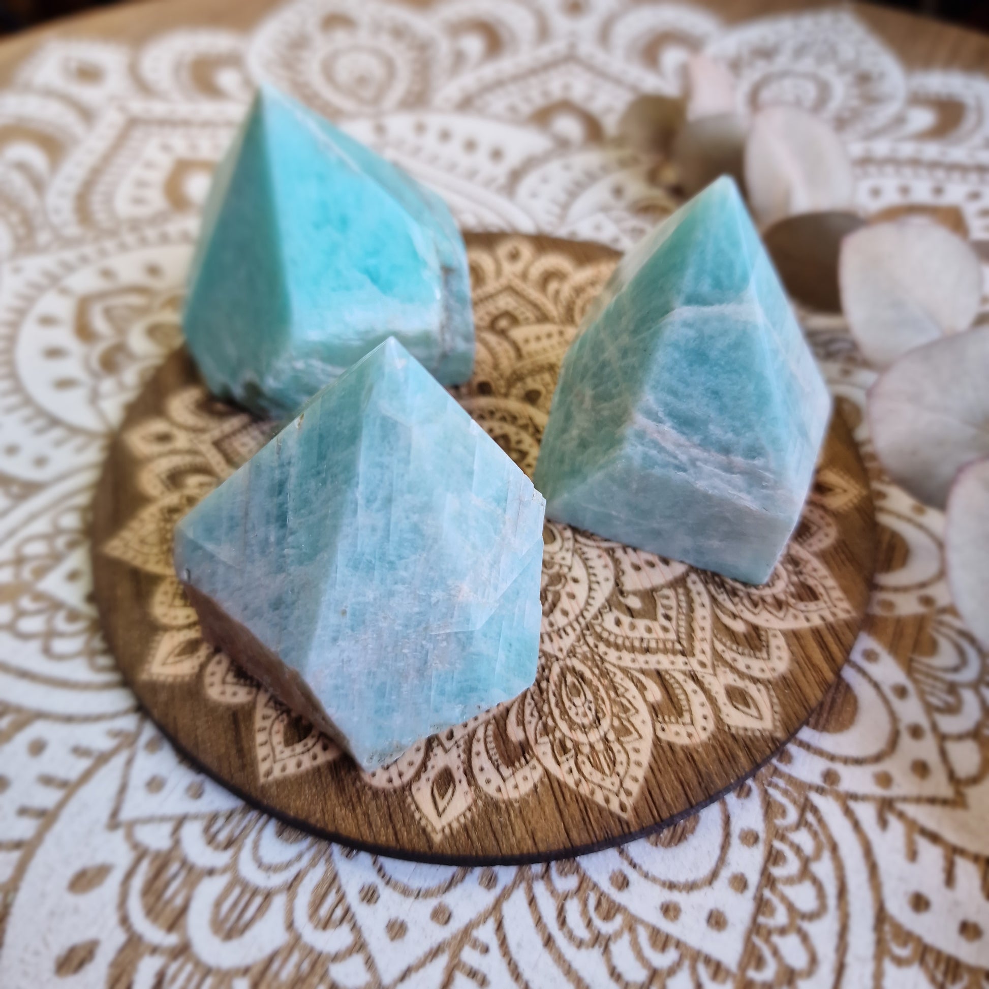 La amazonita es una piedra conocida por su energía calmante y equilibrante, ayudando a liberar tensiones y promover una comunicación más serena y sincera. Ideal para colocar en espacios de meditación, trabajo o descanso, esta punta ayuda a mantener una vibración de tranquilidad y confianza.