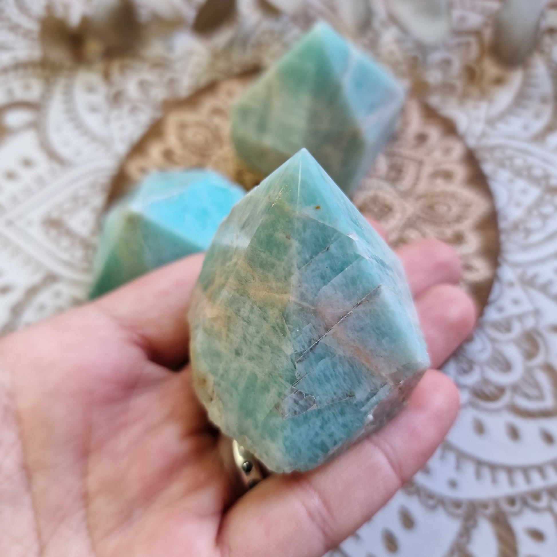 Punta Generador de Amazonita Semipulida ~ Calma, Equilibrio y Comunicación Interior