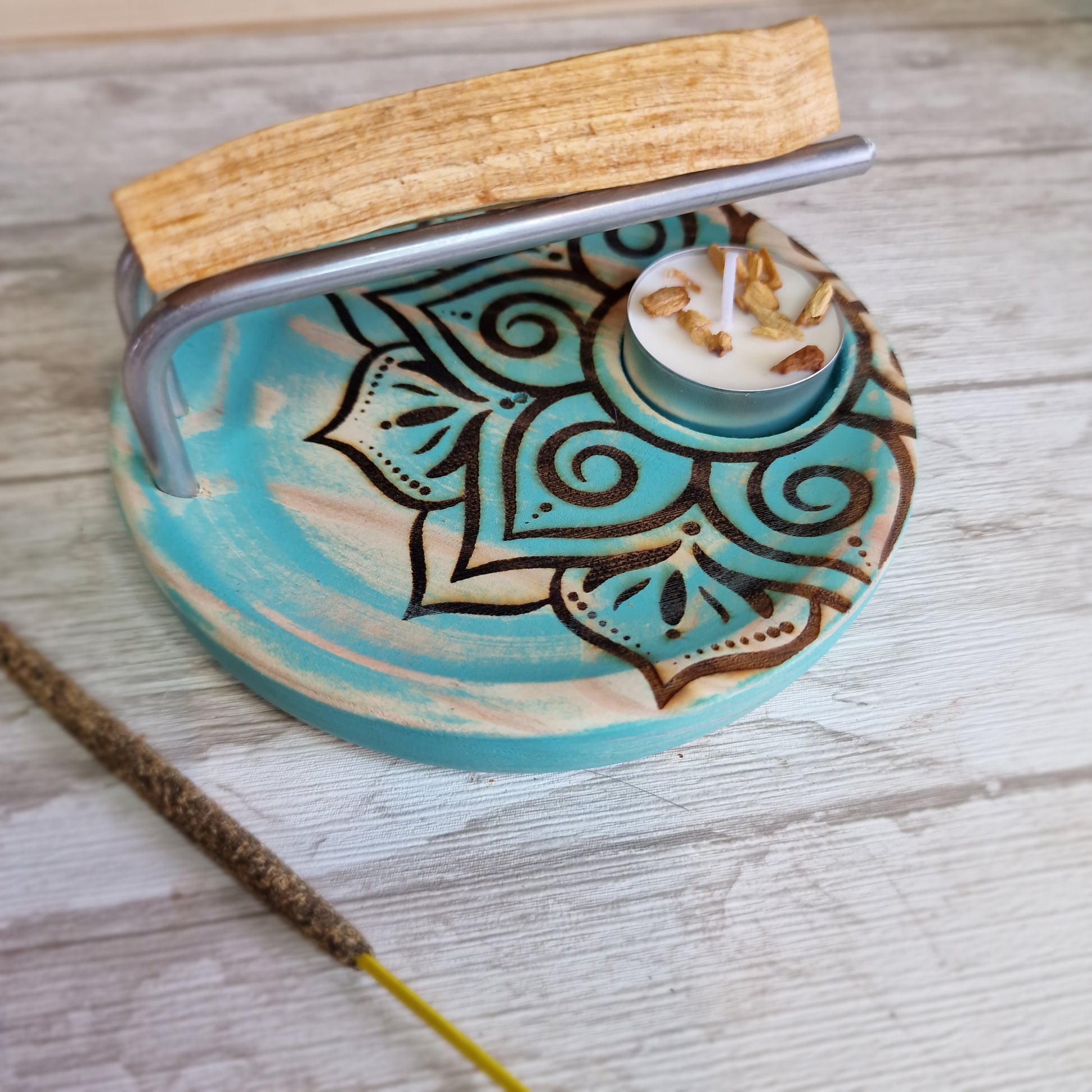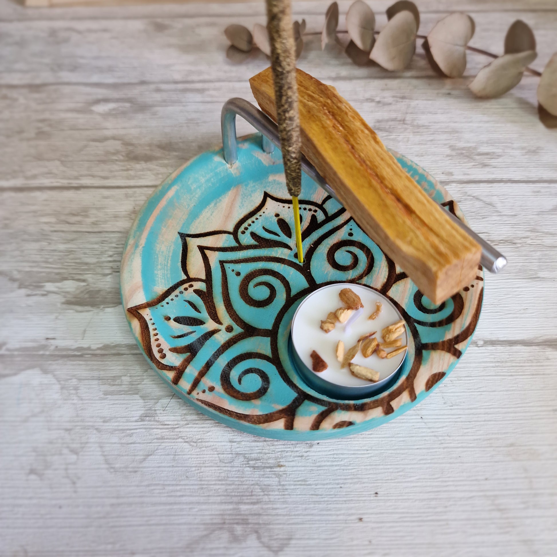 Quemador mandala turquesa hecho a mano precioso con una calidad excepcional. Recibi el pedido con mucha ilusión y lleno de detalles bonitos !!!!! Felicidades por lo profesionales que sois y la energía tan bonita que trasladais.🥰