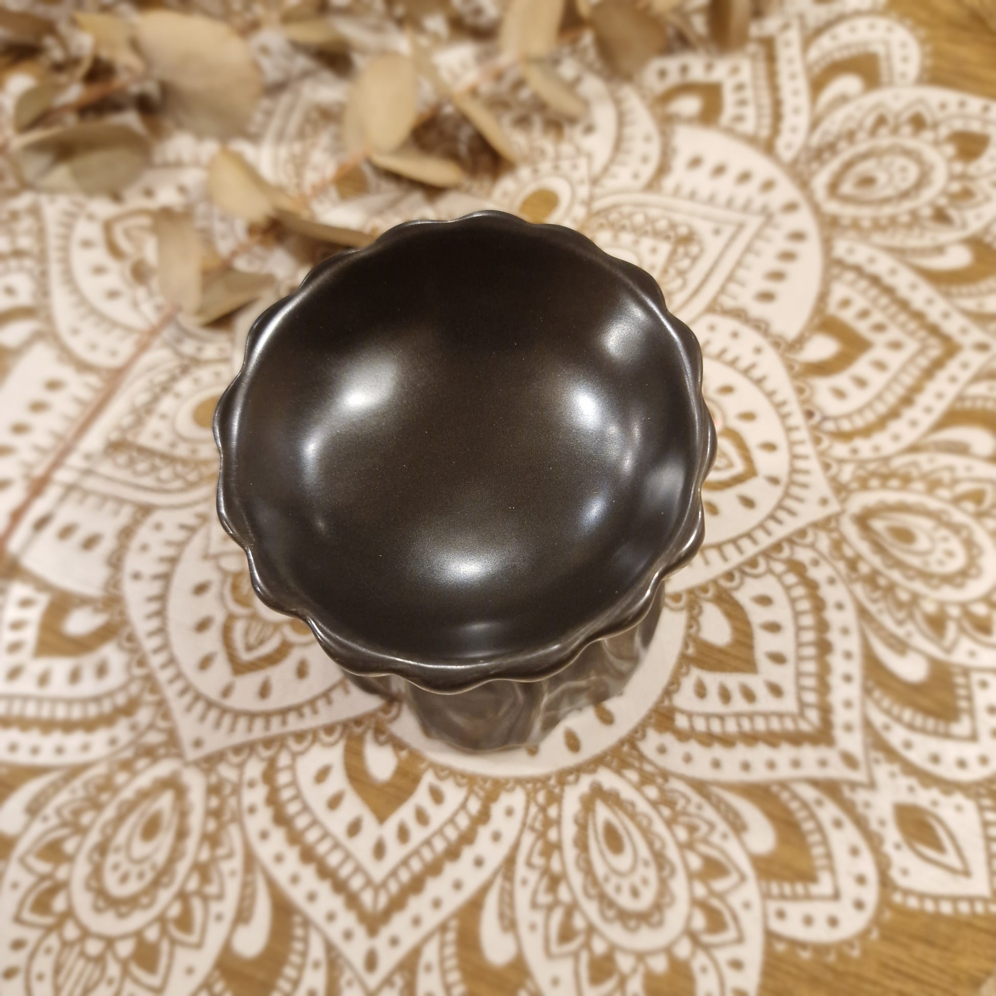 El quemador Esencia Geométrica es una pieza de cerámica en color Negro decorada con delicados patrones geométricos que evocan equilibrio, orden y serenidad. Su diseño moderno y su acabado detallado lo convierten en un elemento decorativo ideal para acompañar tus momentos de calma y bienestar.