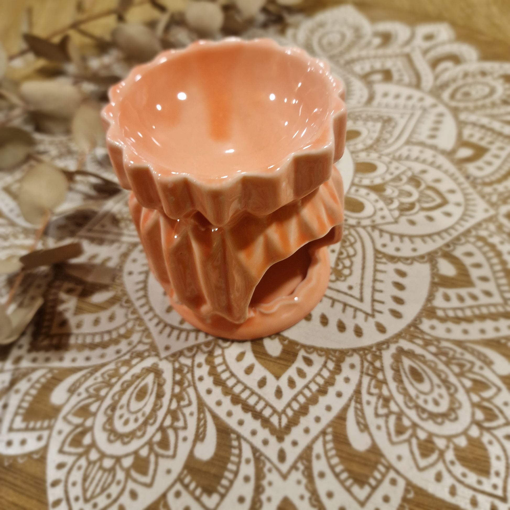 El quemador Esencia Geométrica es una pieza de cerámica en color Rosa decorada con delicados patrones geométricos que evocan equilibrio, orden y serenidad. Su diseño moderno y su acabado detallado lo convierten en un elemento decorativo ideal para acompañar tus momentos de calma y bienestar.
